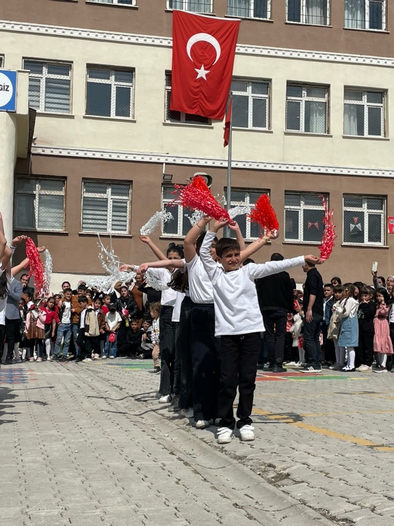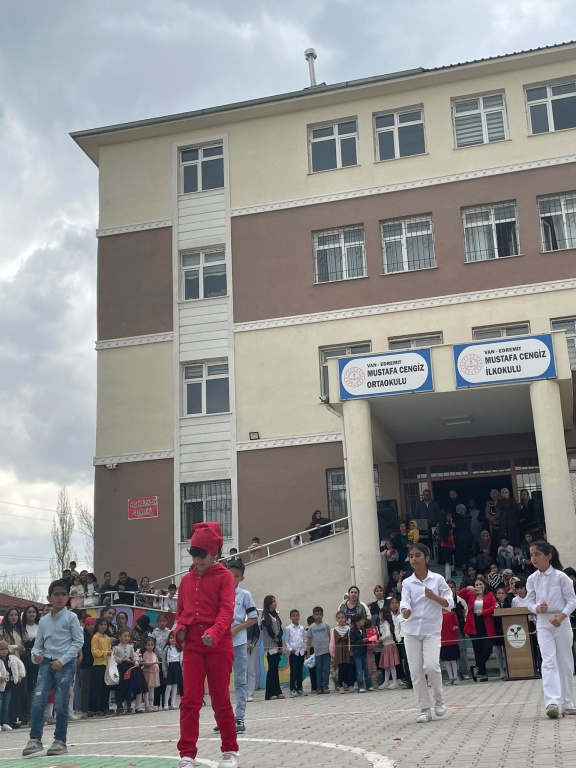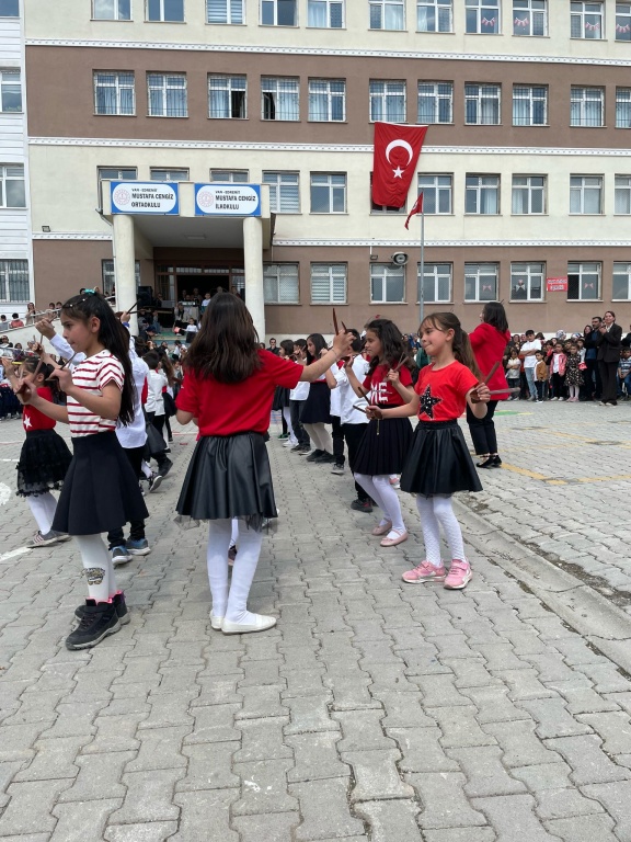 Mustafa Cengiz Ortaokulu öğrencileri, 23 Nisan etkinliklerine büyük bir coşkuyla katıldılar. Her sınıf, kendine özgü bir etkinlik